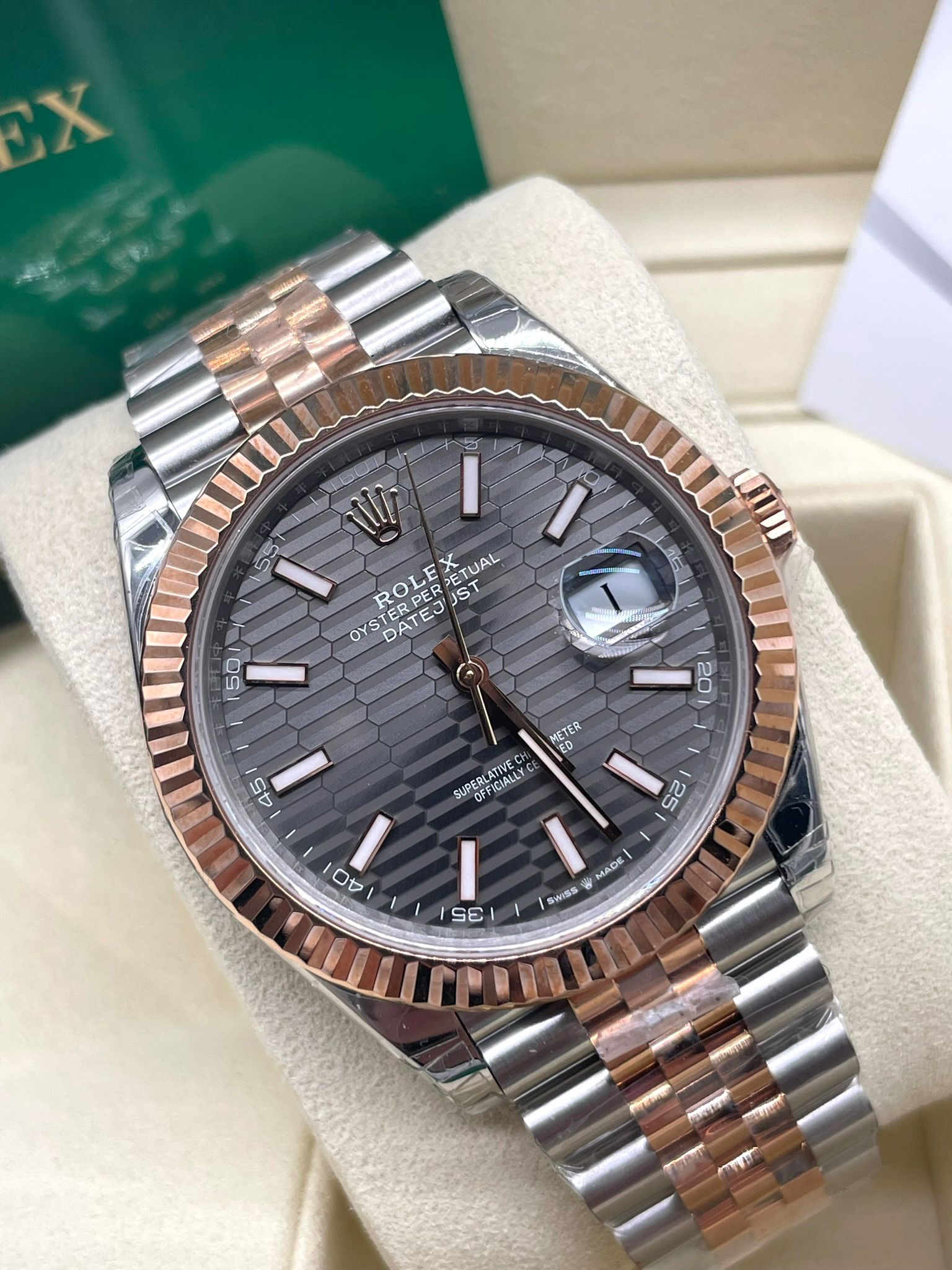 Rolex Datejust Rhodium Grey Motif Rosé Gold Jubilee 41MM Super