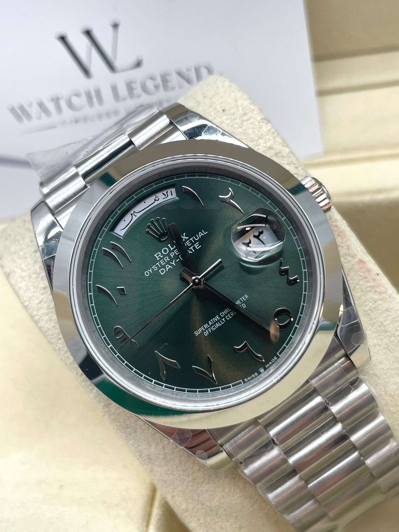 Rolex Day-Date Green Roman Platina Dial White Gold Bezel 40MM BP